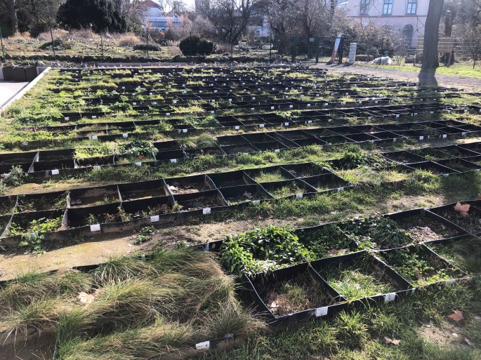 In addition, we started what we call the α-β- diversity experiment. We aimed to investigate the effects and mechanisms of β-diversity on productivity. Using common grassland plant species, we experimentally manipulated initial α– and β-diversity in 50x50cm plots, with half of the plots being filled with nutrient-rich and the other half with nutrient-poor soil. By allowing species to ‘migrate’ from one subplot to another (and hence potentially immigrate into plots that match their abiotic preferences better), we could evaluate the role of species sorting as a mechanism of β-diversity on ecosystem functioning.